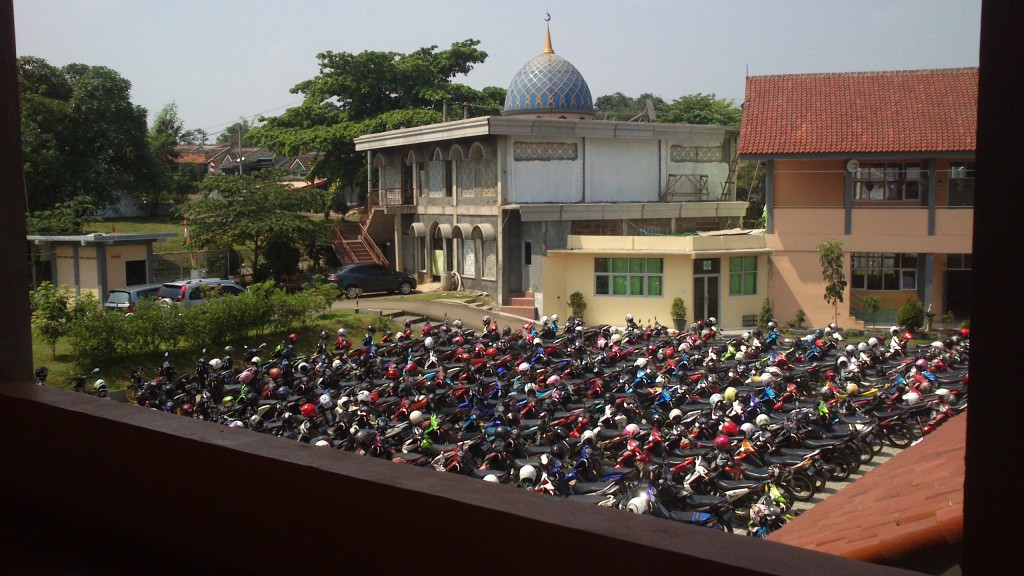 Pos Security dilihat dari balkon masjid Baitul Ilmi SMA Negeri 3 Cibinong